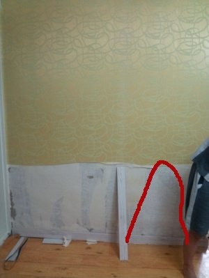 올 실크벽지였으나 빨간색으로 칠한 부분을 다 뜯어논 관계로