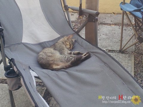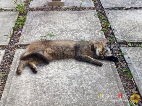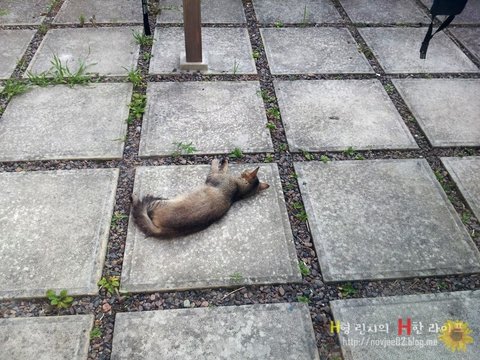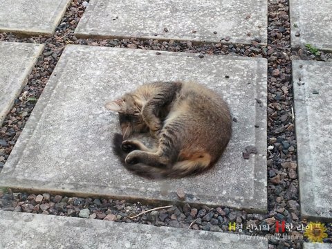 얼마전엔 내 눈 앞에서 도마뱀을 잡아 먹던 야생 고양이 키티의 잠방!