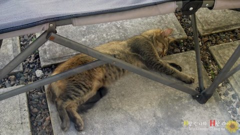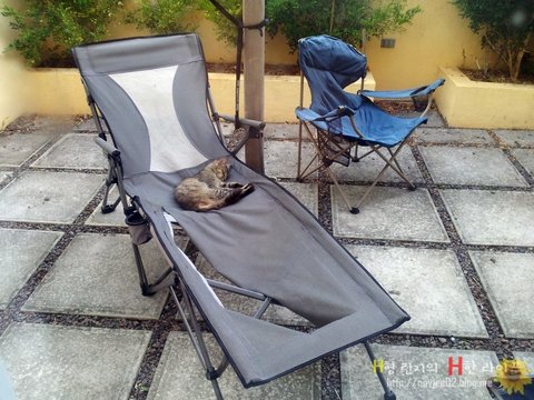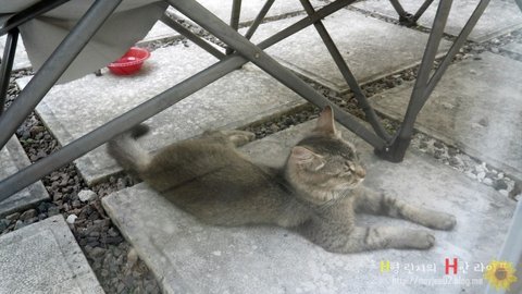 해가 비출때면 의자를 그늘 삼아 의자 아래서 잠을 청합니다.