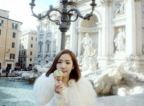 미끄럼틀에 앉은 사진으로 근황을 전한 박민영.....
