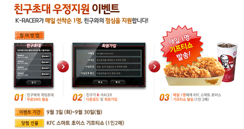 K-Racer를 친구에게 초대하면 매일 선착순 1명에게 점심을 지원한다고 하네요!!