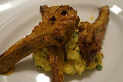 인도향신료로 맛을 낸 lamb chops입니다. 한국말로는 어떤부위인지 설명하기 애매하네요 ;;