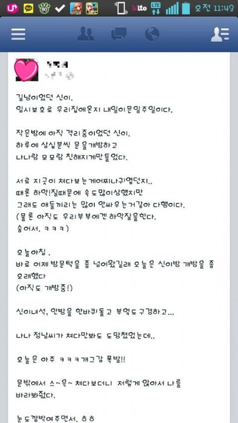 -신이 임보해주시는 천사님께서 페이스북에 쓰신 일기-