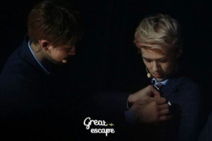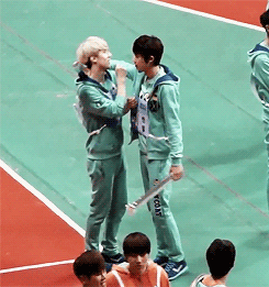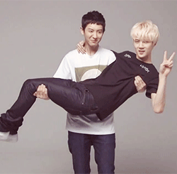 움짤이 쫌 느려여ㅠㅠ 오센 허리에 자연스럽게 손두르는 찬열