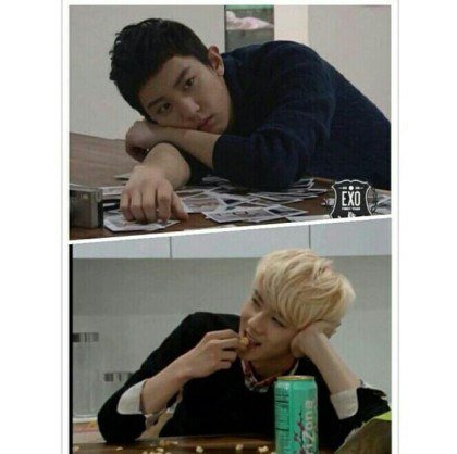 찬열이 형 머리 손질해주는 오센. 찬열이는 탐탁찮은 표정인데ㅋㅋㅋ