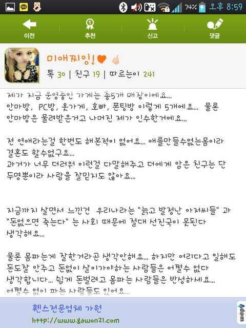 어쩔수없이 몸파는 사람있다고?지랄하네 신발 가랑이 벌리지말고 사지멀쩡하면 일을해야지 신발 진짜 이런년들은 소처럼 쇠고기 이력제 처럼 이름 주민등록번호 치면 업소등 다 나와야한다 진심.