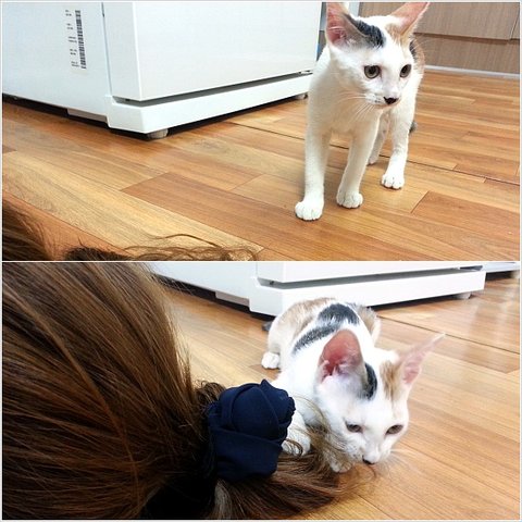 집사양반 친구 머리카락도 씹고 뜯고 맛보고 ~~