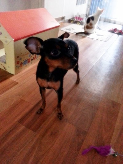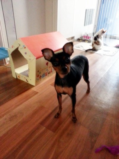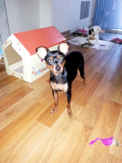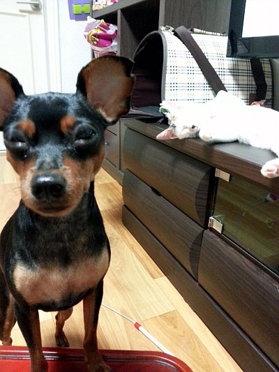 집사가 콩이를 부르면 주인앞에 앉아 주인을 관찰하는 완두