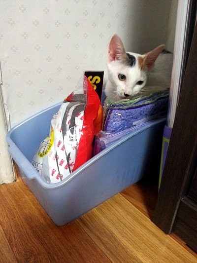부스럭 대는 청소용품 찾기
