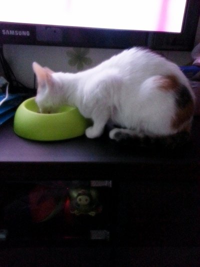 완두가 하도 콩이 밥을 먹어서 콩이 밥그릇을 티비장 위로 옮김..