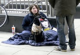 허름한 옷차림에 대부분 옆에 커다란 개들을 데리고 건물벽에 자리깔고 앉은 모습이 누가봐도