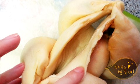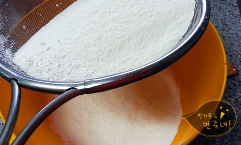 강력분을 체해 부드럽게 걸러주세여.