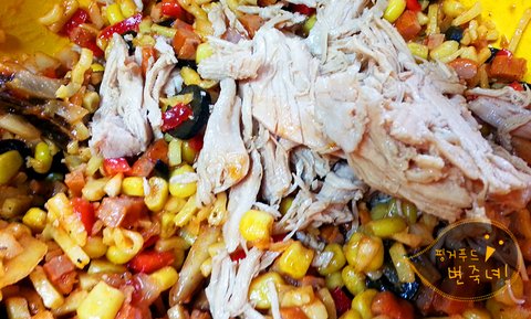 콘옥수수와 기름뺀 닭가슴살캔을