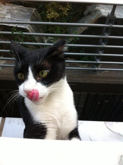 그치만 이 턱시도냥은 미남이 따윈(?) 안중에도 없습니다.
