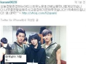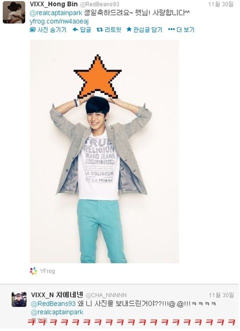 생일 축하드린다며 수줍게 자기 사진을 보내주는 박효신 짱짱팬 빅스 홍빈군ㅋㅋㅋㅋ 사실 빅스 멤버들 이름이랑 얼굴은 잘 모르지만 가끔 이런거 올라와서 홍빈이 이름은 알고있음ㅋ 박쿄 팬들도 성공한 팬이라며 부러워함...ㅋㅋㅋㅋㅋㅋㅋㅋ