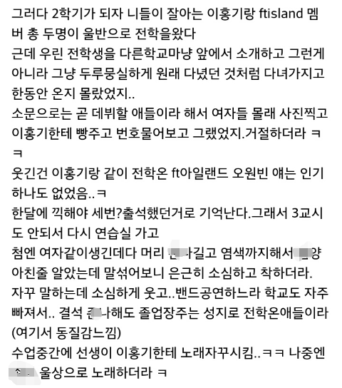 경희대에도 홍기 당당히 노래실력으로 합격했었는데