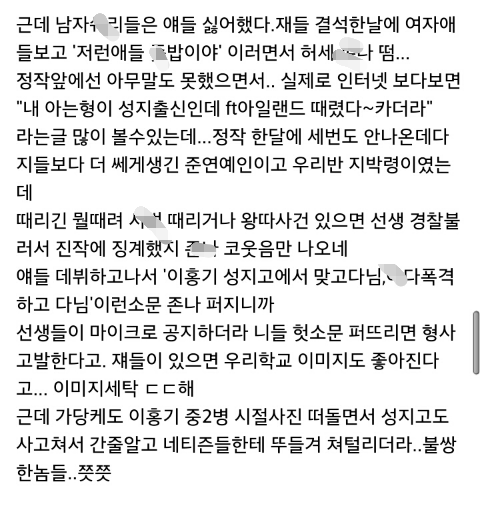 성지고가 문제있는 학생들이 많은건 알아요.