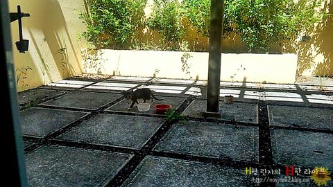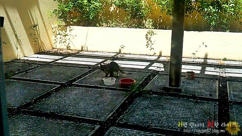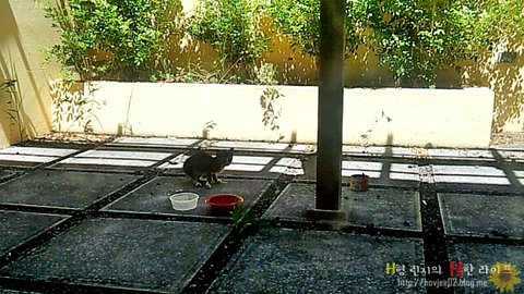 검은 고양이는 용감한가 봐요. 근처로 안가니까 나와서 냠냠냠.