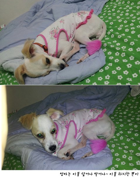 그렇게 해결되려나 싶었는데 입양자분께서 현재 사시고 있는집이 서울 도시의 한중심 거리이고 사시는곳 윗층에 집주인이 있었는데 처음에 이곳으로 이사왔을때부터 강아지에 대한 안좋은 인식을 가지고 있었던 분이라 그때는 키우던 아롱이를 데리고 있었는데 아롱이를 보고 무슨 개를 집에서 키우냐고 노발대발이 장난아니였다고 합니다. 그래서 이 아이가 무슨 피해준거 있냐고 하시면서 지지않고 두둔을 해서 그렇게 키웠다고 하네요.