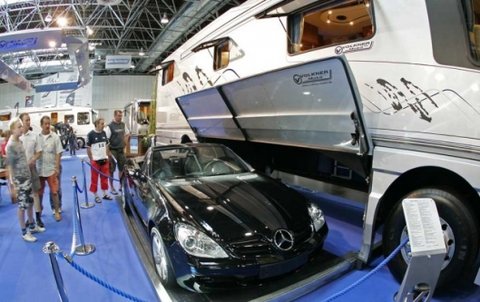 이러한 볼보가 만들어낸 캠핑카는 세계에서 가장 안전한 캠핑카로 불리운다. 버스 2대를 연결해서 만들어낸 이 거대한 캠핑카는 최고급호텔을 지향한다. 돌출형 톱은 평수를 최대 3평까지 넓힐 수 있기때문에 리빙룸의 안락함을 완벽하게 재현한다.