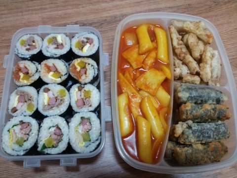 2. 요거는 가족들에게 만들어준 떠뽀끼, 김밥, 납짝만두