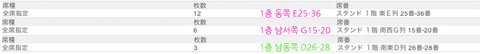 예매중 : 동쪽 E25-36  /  남서쪽 G15-20  /  남쪽 D15-17 / 남동쪽 D26-28