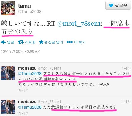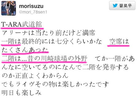 [T-ARA]부도칸2층 텅텅 해요...7월(공연)의 절반 정도입니다(>_<)