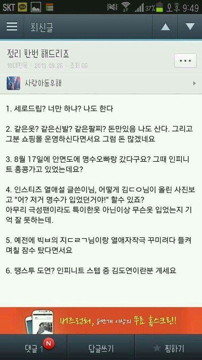 엘과 열애설난 김도연씨가 자작했다는 증거
