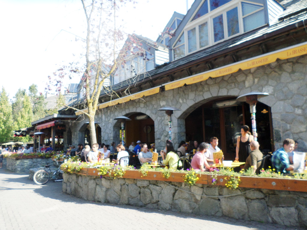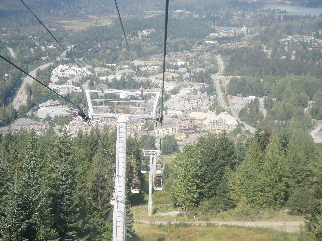 지금 휘슬러에서 스키를 탈 수는 없지만 산악자전거를 타는 사람들이 많았습니다.