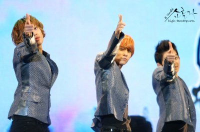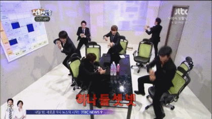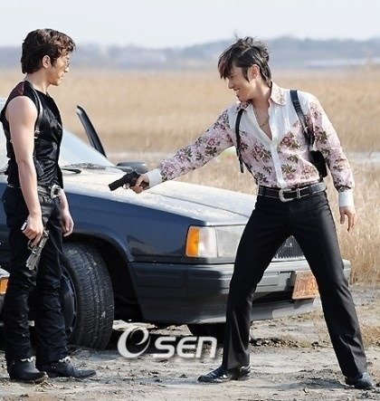 장난스럽게 총쏘는 남자 아이돌들