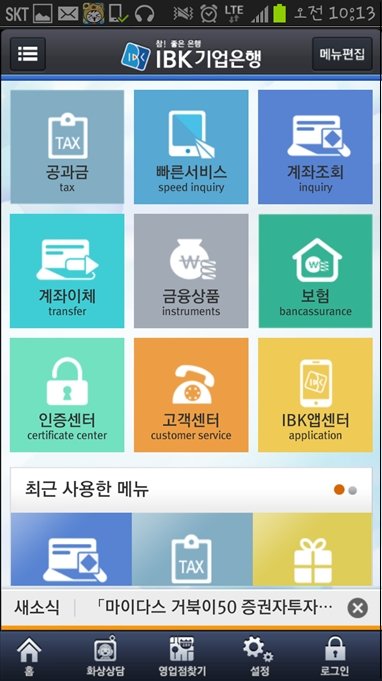 이번에 새로 나온 IBK ONE뱅킹을 설치하고 사용해봤는데,