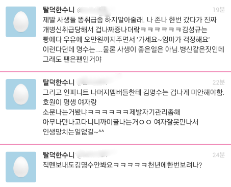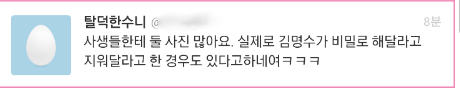+ 그렇죠 사생이팬은아니지... 난지금그것보다 아직까지김명수쉴드쳐주는애들이 이해안감. 사진나오면끝이지뭘ㅎ 본사람들도 수두룩하고ㅋㅋㅋㅋㅋㅋ 그냥김명수가트위터로 인정만하길바랄뿐. 여기서 아니라고하면 진짜망하는거다