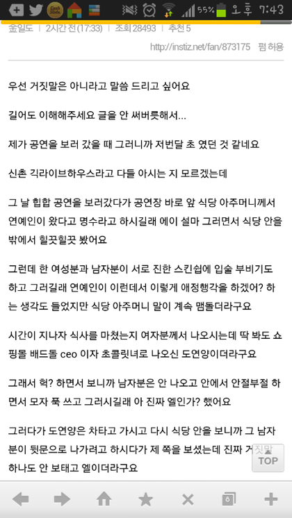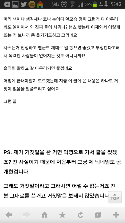김명수 이번일실망이다.지금도안믿고싶어하는 팬들있는데 난 터졋을때부터 안믿엇어 그전부터 이상하다고생각햇지부디 여친만나도 좋은여자만났어야지 너랑사귀는거 알릴려는여친