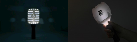 왼쪽이 마이네임 응원봉 오른쪽이 비스트 로즈봉