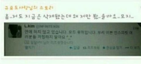 난 이게 가장 자작같은데 (아니다 그 트위터 글이 최고고) 인피니트 팬들아. 제발. 이건 진짜 믿으면 안되는거임. 팬이면 더더욱 그 보고 어? 좀 이상한데? 했어야 하는거임. 난 그 사진을 본 순간부터 미친년 자작이네 그랬다.