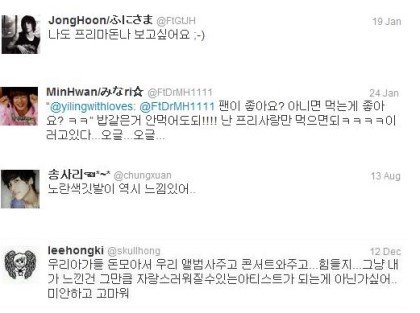 사진을 첨부하고싶은데 단체컷도 그렇고 우리애들사진엔 다 명수가 있어서ㅋㅋㅋ지금은 별로 보고싶지 않으니까 그냥 보고 '잉피도 저정도는 우리한테 해줘'하고 넘겼는데 지금보니까 마냥 부러운 에프티 팬바보짤이나 첨부해야겠다ㅋㅋ.......혹시 명수야,그리고 나무야 보고있다면