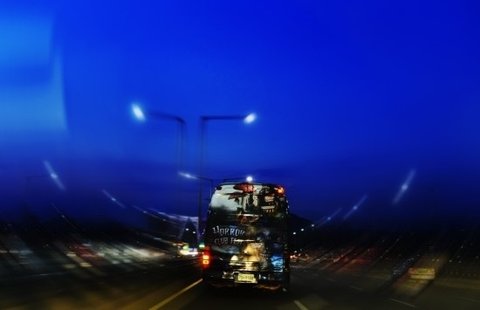 고속도로를 시원하게 달리는 음산한 버스가 등장하고...