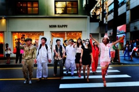이 좀비들은 사람들이 밀집되어있는 이태원 가로수길, 강남역에서 거리 퍼포먼스를 진행했는데요![]()