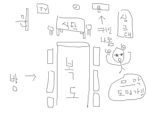 하도 목청껏 쥐를 잡자고 소리쳤더니 우린 목이 말라서 위의 그림대로 싱크대 있는 쪽으로