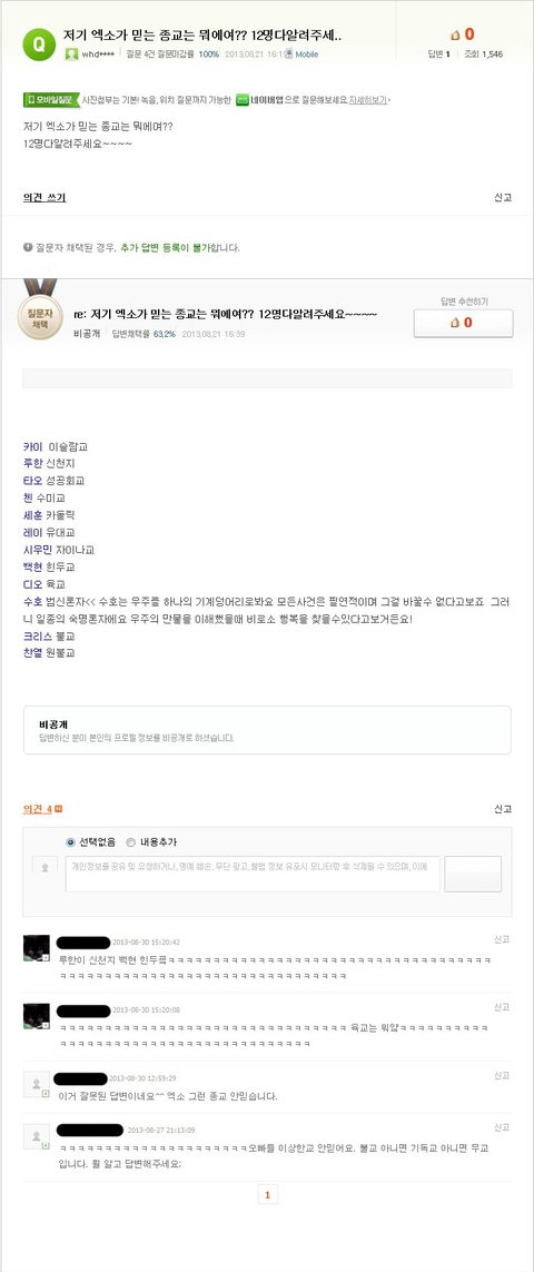 저기 엑소가 믿는 종교는 뭐에여?? 12명다알려주세요