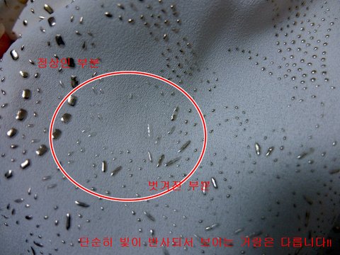 사진에서 빨간 동그라미 안에 부분이랑 그 밖에 부분을 비교해서 보시면 바로 옆에있는 무늬임에도 그렇게 확연히 벗겨지는게 보이는데