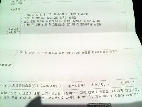 그리고 확인해본다며 옷을 더 망쳐놓은거에 대해서는 어떻게 보상을 할건지도 의문입니다.