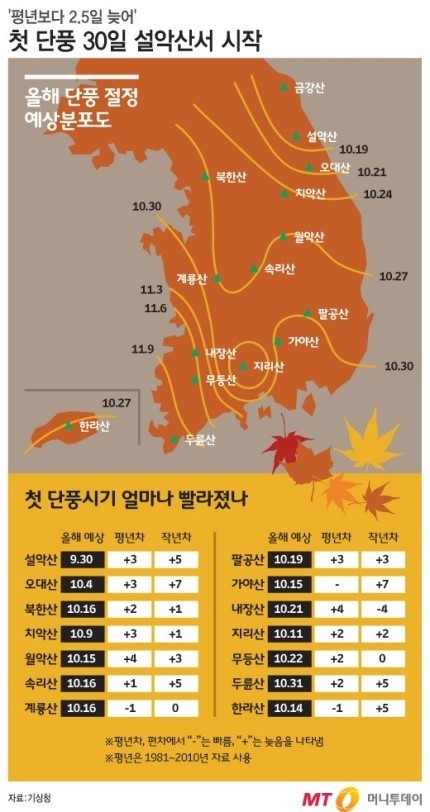 이번 가을은 평년보다 2.5일 늦어진다고 하는데요.