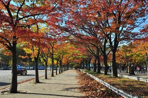 노란색의 은행나무와 붉게 물든 단풍이 어우러져 있어 연인들의 발길이 잦은 곳이기도 한데요.