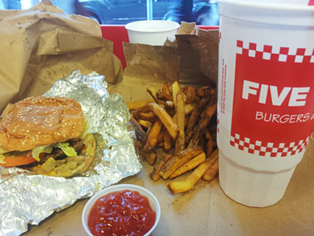 있는지 알아보고 있다가 학원 골목 바로 옆에 위치하고 있던 Five guys를 찾았습니다.