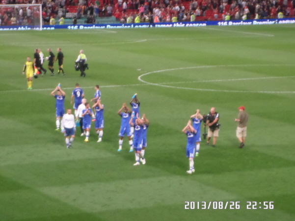 안타깝게도 자리는 첼시 자리였는데요, 원정 온 첼시 선수들에게 힘을 싣어주기 위해서 인지