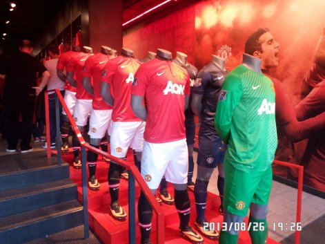 이곳은 맨유 선수들의 유니폼과 여러가지 축구용품을 살 수 있는 맨유 매점입니다.