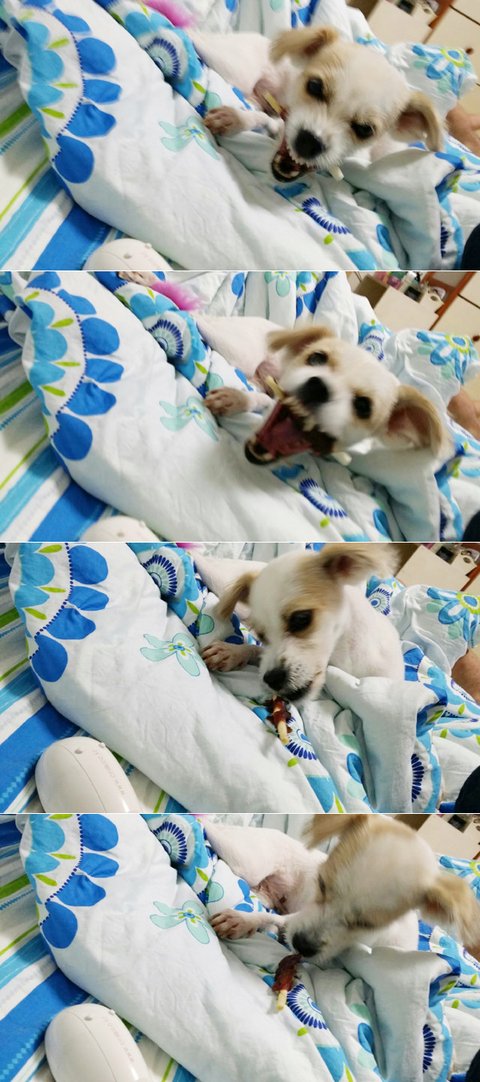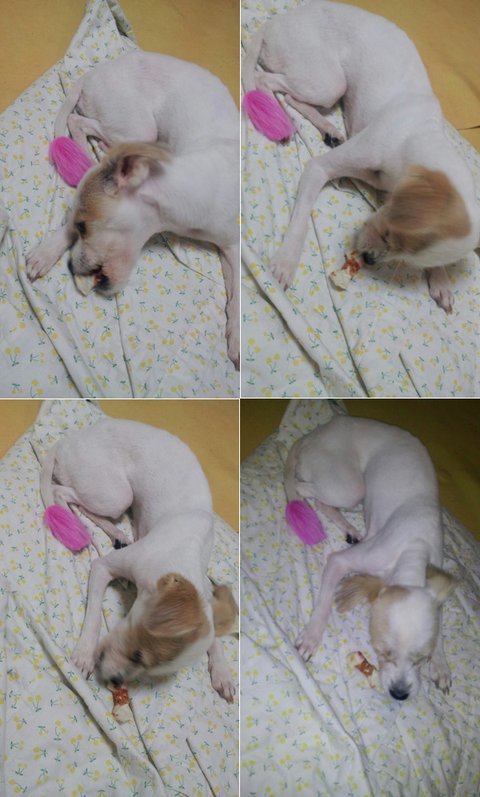<쁜이 사연듣고 마음아파하며 친한언니분께서 사료랑 개껌을 선물로 주셨다네요. 감사하는 마음으로 잘먹어주는 쁜이^^>