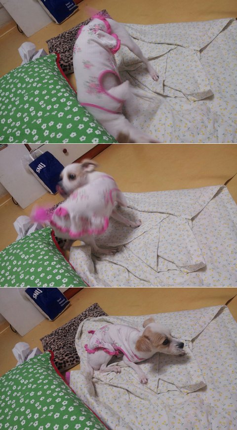 <침대 커버 바꾸고 새이불 꺼내니 게시는 쁜이가 먼저 차지>