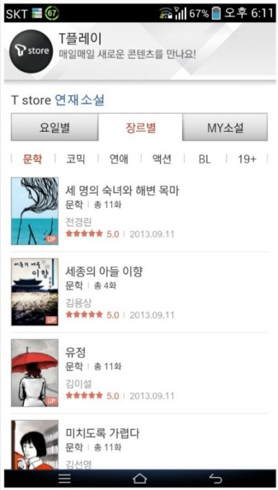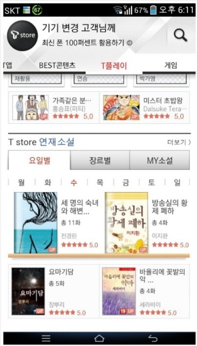 하단에 티스토어 연재소설란이 생겼다는 말 듣고바로 봤지요 ㅎㅎ